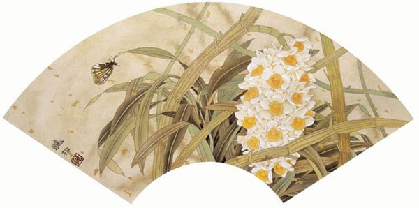 作品名称:满阶芳草绿一片兰花香 创作年代:2002年 作品尺寸:30*52cm 作品描述:纸本重彩