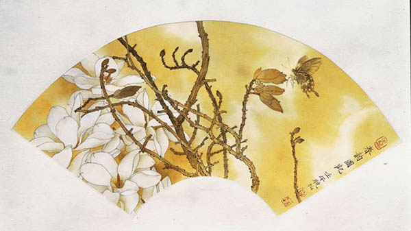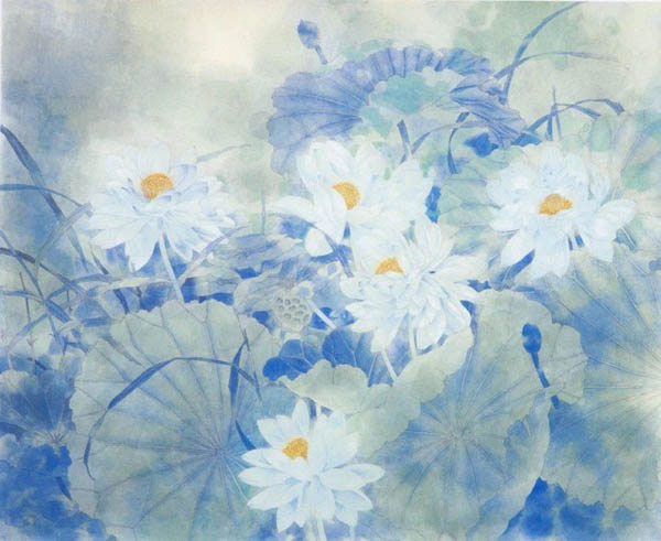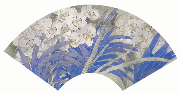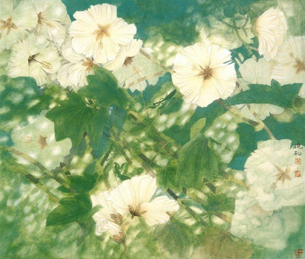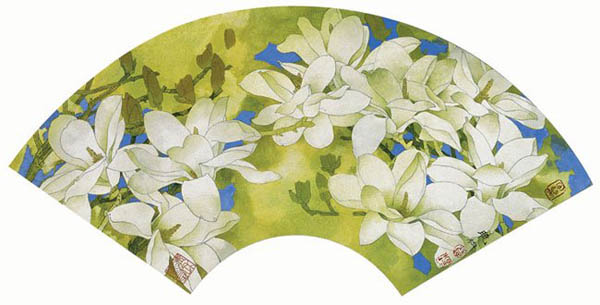 作品名称:淡月玉兰 创作年代:2002年 作品尺寸:30*52cm 作品描述:纸本重彩