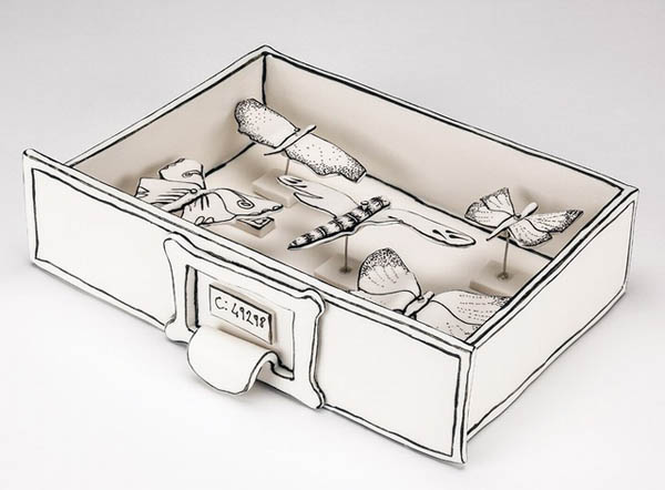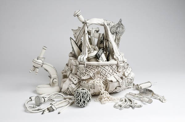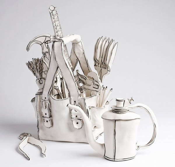 这些歪歪扭扭的古怪雕塑一看就是纸质的,不过真相往往会逃出我们的想象。来自伦敦的年轻艺术家Katharine Morling利用粘土创作了一系列黑白色陶瓷作品,无论形态与质感都会让人误认为是纸做的雕塑。