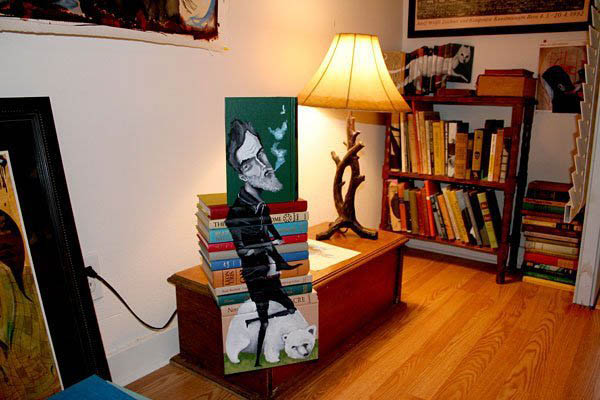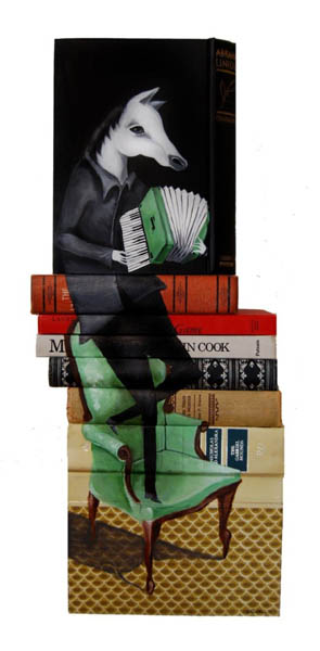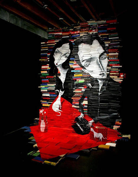 来自洛杉矶的艺术家迈克Stilkey ,喜欢随意涂鸦,对一切不确定的事物感兴趣,想用自己的记录方式表现生活。Mike Stilkey把旧书堆积起来作为画布,用油墨、涂料等在旧书籍上进行大胆创作,Mike Stilkey大部分创作所用的书籍都来自于图书馆丢弃的图书以及别人的捐助。其作品具有特殊而又新颖艺术表现形式。至今,Mike Stilkey创作的最大尺寸的画作是在由超过5000本书籍堆积而成的画布上完成的,而此次创作也是他个人印象最深的一次创作经验。