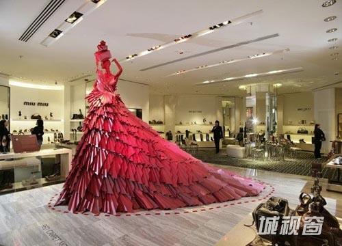 Zoe Bradley,英国女艺术家。目前专注于使用折纸创作时尚店铺及橱窗装饰,目前合作过的品牌包括Tiffany,LV,Alexander McQueen等。她用3000朵红色纸玫瑰做成长裙,向已故“英伦玫瑰”戴安娜王妃致敬。