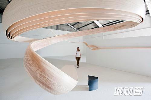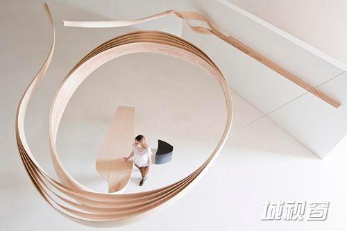 这个线条自由的大型雕塑用一层层的橄榄木构成,从地板蜿蜒上升至天花板。从开端的桌面造型向外扩散直到包围整个“艺术之家”的空间,最终悬挂栖息在画廊侧墙上成为大的搁架。“艺术之家”的展览空间为Joseph提供了在Roche Court新艺术中心特有环境下诠释形态和功能关系的机会。