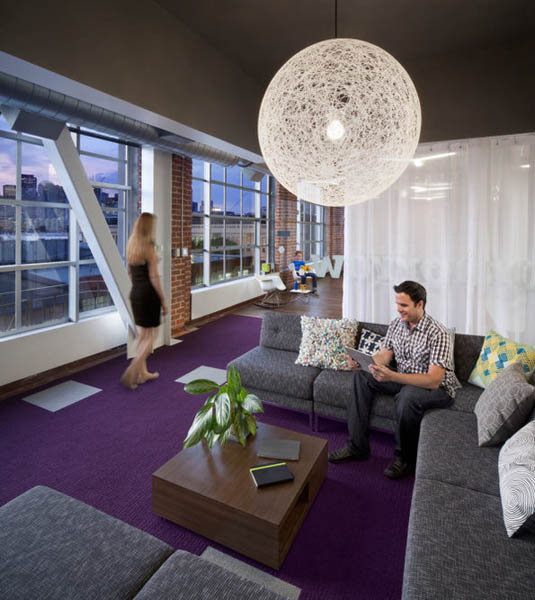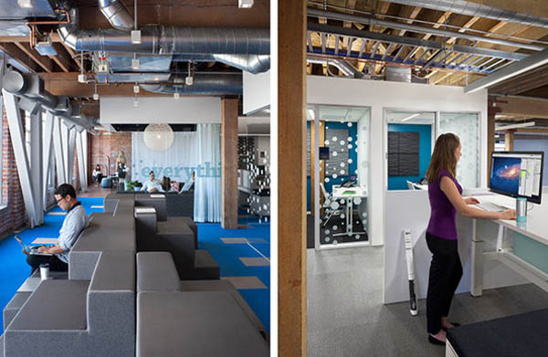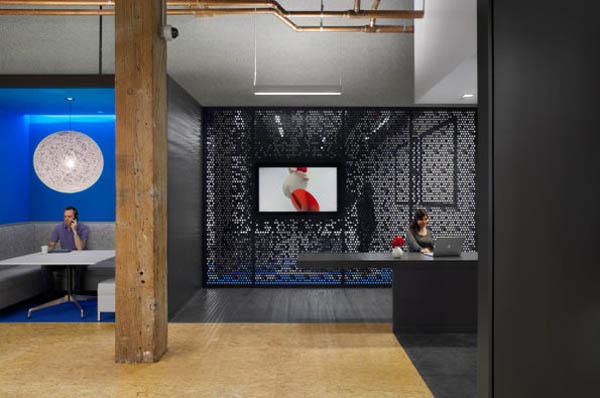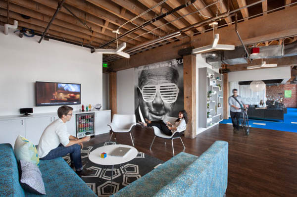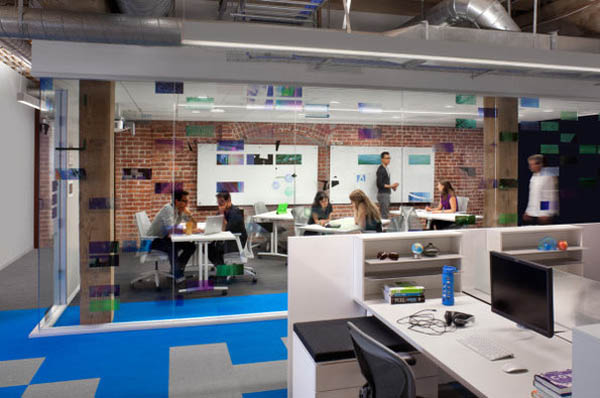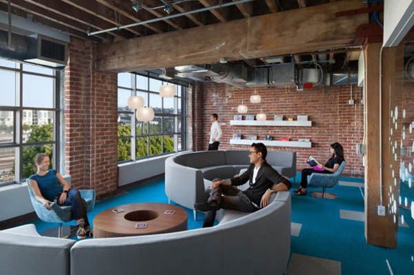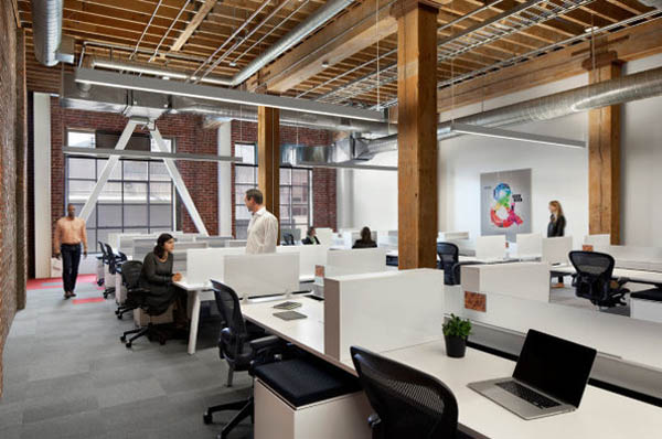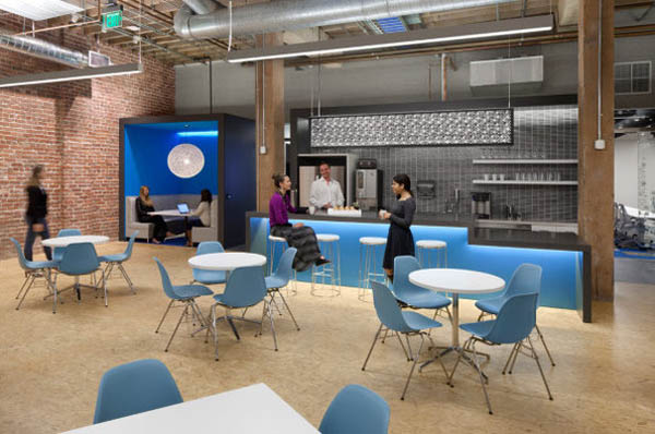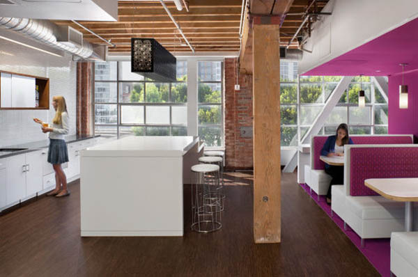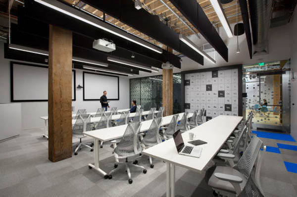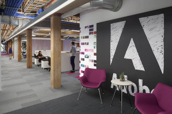 随着 Adobe 的日益壮大,现有办公空间已不能满足团队工作需求,因此其邀请了 VALERIO DEWALT TRAIN ASSOCIATES 来设计其位于旧金山的全新办公楼。设计团队采用了不同的颜色来区分各个功能区,从而淡化每个功能区之间的界线,而现代装修风格中也混合了质朴的砖墙和木质柱子,加上直接外露的天花板和横梁,使得整体设计看起来简洁利落。