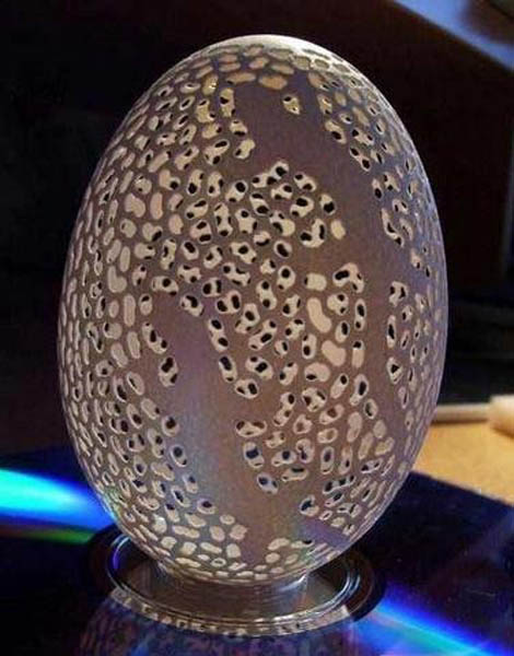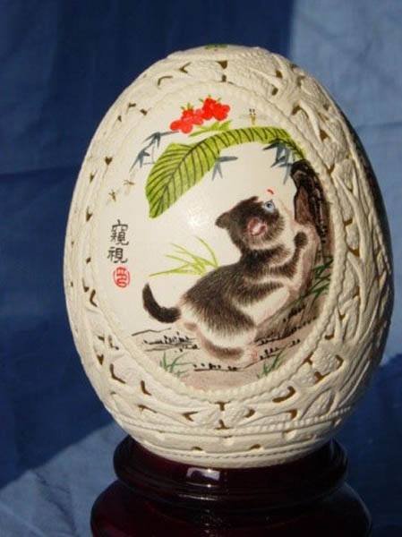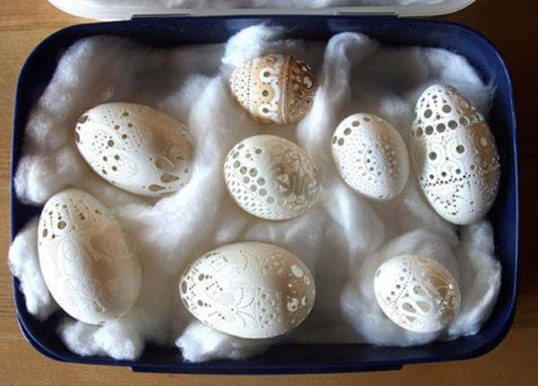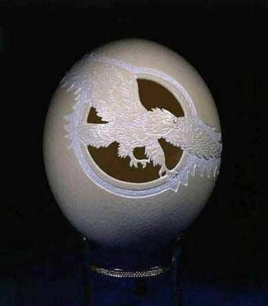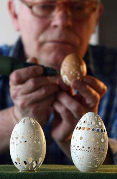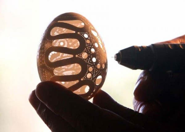 复活节前夕,复活节是西方最古老的基督教节日之一,孩子们为朋友和家人给鸡蛋著色打扮一番,渐渐发展成为鸡蛋上雕刻艺术。蛋雕艺术,是一门神奇而特殊的艺术,它融雕刻与绘画 于一体,运用复杂多变的雕刻技法如阴刻、阳刻、线刻、浮 雕、影刻、点刻、拼雕、套雕、衬雕、镂空、镶嵌等多种雕 刻技法。 远在明清时期,民间在喜庆婚娶、祝福庆寿、喜得贵子时,为图吉祥如意,就有了赠送红鸡蛋的习俗。 经过多年演变,彩蛋工艺逐步提高,如今,人们将鸡蛋钻孔掏空, 在蛋壳表面雕刻精美图案,终于形成了具有较高欣赏价值的艺术珍品。今天《城视窗》就给大家带来几组最脆弱的艺术品——蛋雕艺术。