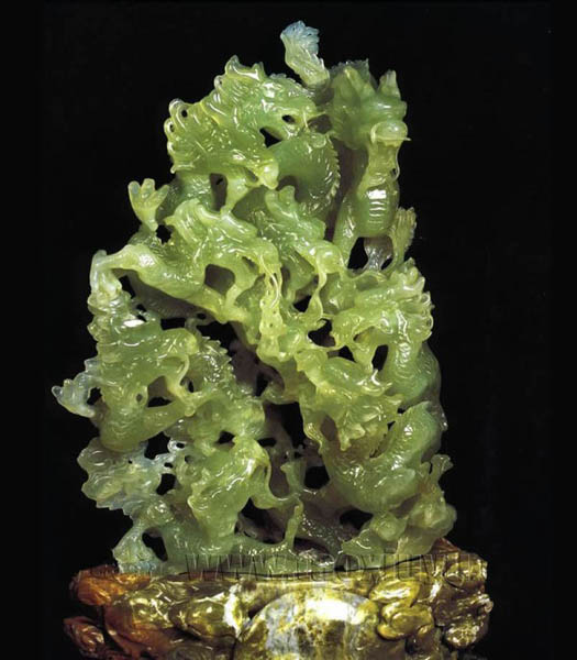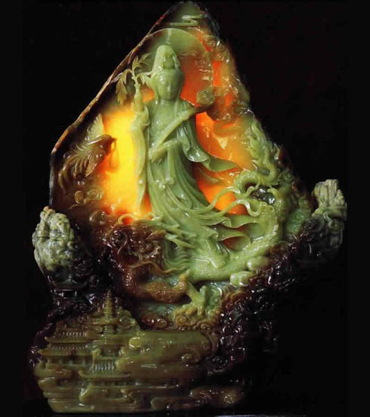 岫岩玉又称岫玉,以产于辽宁省鞍山市岫岩满族自治县而得名,为中国历史上的四大名玉之一。广义上可以两类,一类是老玉(亦称黄白老玉),老玉中的籽料称作河磨玉,属于透闪石玉,其质地朴实、凝重、色泽淡黄偏白,是一种珍贵的璞玉。另一类是岫岩碧玉(亦称瓦沟玉引)属蛇纹石类矿石,其质地坚实而温润,细腻而圆融,多呈绿色至湖水绿,其中以深绿、通透少瑕为珍品。清朝皇太极刻有“ 皇帝奉天之玉” 的传国玉玺、乾隆皇帝刻有“ 国朝传宝记” 的玉玺,都是用岫玉雕制而成。