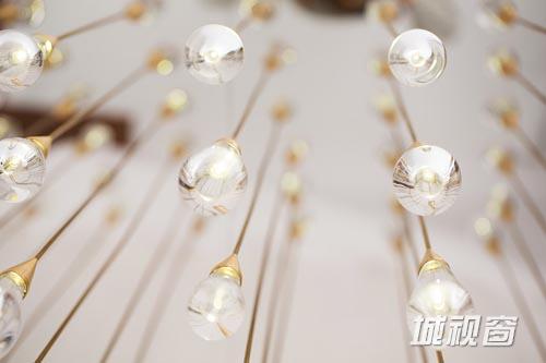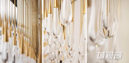设计时,DH Liberty首先研究了雨滴,以及通过雨滴扩大灯光效果的特殊方式。该款灯具模仿雨滴下落的情景,投下的光晕正如同水面上大大小小的涟漪。DH Liberty与英国的玻璃吹制工和金属件工程师合作创造了该款水晶“泪珠”吊灯。每一个水滴灯都由两个部分组成:黄铜螺帽和人工吹制的水晶灯。吊灯开启后,灯光在地面上投下阵阵涟漪。根据雨滴的特质,每一个水滴灯的形状都是独一无二的。