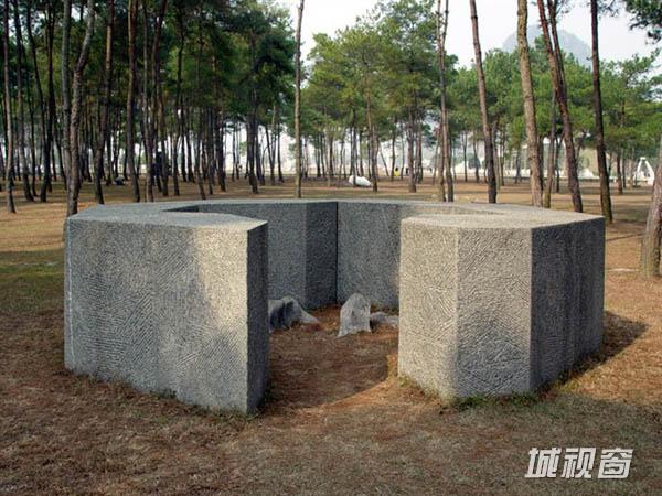 愚自乐园位于中国南部风景如画的桂林雁山区大埠乡,由台湾企业家曹日章先生于1998年创立,坐拥八千亩山水奇景,集艺术创作、展览、交流、会议、培训、休闲于一体,以其绝美的自然风光和浓郁独特的艺术氛围成为世界顶级的创作基地与度假胜地。2003年,愚自乐园被评为国家级AAAA景区;2004年,被中央文化部授予“全国文化产业示范基地”称号。愚自乐园由台湾企业家曹日章先生于1996年开始筹设,是一座结合桂林市秀逸天纯地理景观与全球杰出艺术家创作心血,以洞窟艺术与当代雕塑为主的大型国际地景艺术公园。其建园的终极目标与理想是:建立一座活的博物馆,为后人留下当代艺术最美好的文化资产,让桂林愚自乐园未来所有的建设成果都可以成为全人类共有、共享的世界遗产。环绕此一终极目标的达成,桂林愚自乐园的总体艺术建园理念为「保护自然·创造人文」,其呈现与展示作品的艺术主张为「活在当代·走向世界」,其建设成果在于体现「淳美山水·艺术极境」,藉由人文与自然的交融、以文化艺术永恒延续的力量,为全人类创建一方「人间仙境·美丽乐土」。作为中国目前唯一的文化艺术公益重点项目,愚自乐园未来将持续以开阔的视野,自力或与各界联合举办各类国际艺术竞赛,推展多元化的艺文活动,将艺术文化的种子广为传播,期望藉此将桂林由国际旅游名城再向前推进一步,使之成为享誉国际的当代艺术发展及推广的奥林匹克圣地,引领中国走向全球文化艺术舞台的中心。现在走进愚自乐园,立即可以感觉到这是一个艺术的殿堂。两百多件当代艺术雕塑作品,与四周山水和谐地交融在松林里、湖畔边、绿地中、山脚下,被艺术家赋予了无限的生命力,成为自然与人文完美结合的一个奇迹:被取名为“风之林”的一组大理石柱群,是来自法国的克莱尔·艾氏肯那伊的女艺术家创作的。艺术评论家说:“通过动态的造型,使沉静的石头变成了轻盈而富于动态的结构,蓝色的线条是优美的旋律,宛如桂林的群山生出的雾气。”意大利艺术家创作的“生命之门”的艺术雕塑,石柱刚毅、挺拔,显示出生命的张力。将其设置在水面上,雨水自雕塑上空不断滴落,形成一个永恒持续的过程,象征着人类顽强的精神和意志的最高境界。荷兰艺术家西门——这位有听力残障的艺术家创作的《雨在我耳边哭泣》,表达了艺术家对大自然声音世界的美好向往,凝神中便有一种感动油然而生。