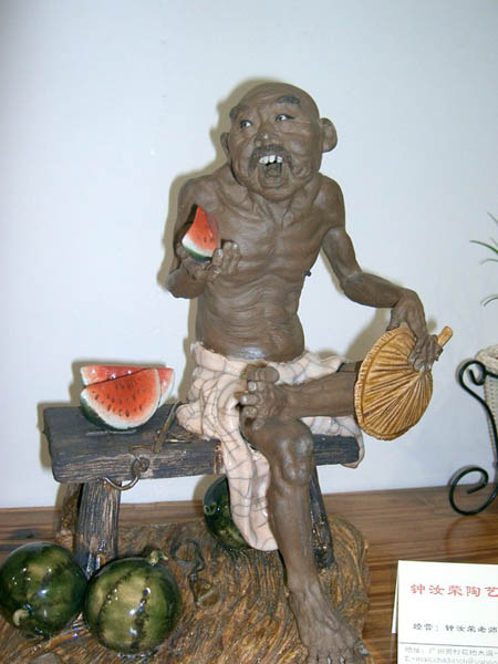 广东的石湾陶瓷早在新石器时代晚期的贝丘遗址中已揭开其烧陶的历史序篇,石湾出现大型窑场的历史最迟可上溯到唐朝。50~70年代先后在佛山石湾和南海奇石发现唐宋窑址,发掘出的均石湾公仔人物塑像 石湾公仔人物塑像属半陶瓷器,火候偏低,硬度不高,坯胎厚重,胎质松弛,属较典型的唐代南方陶器。