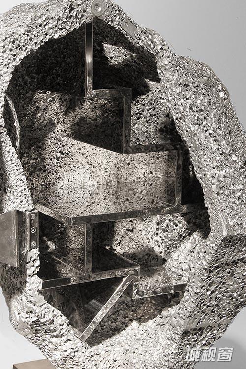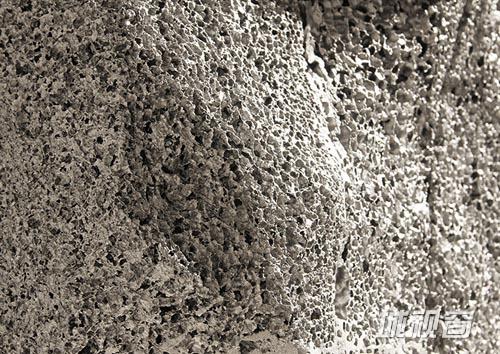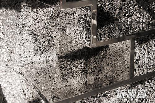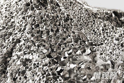 发泡铝的结构特点产生了强大的功能性,现广泛用于建筑行业和汽车工业,作为墙体和汽车盖的隔热材料使用,而“Metallic Geology”橱柜系列则从艺术角度展示发泡铝的美学性。