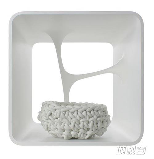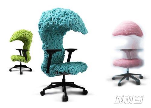 采用废弃的“纠结”边角料编制了办公椅的坐垫、靠背与头罩,其结果是一张舒适的彩色椅子。