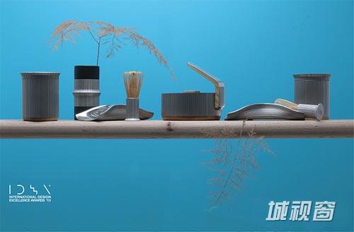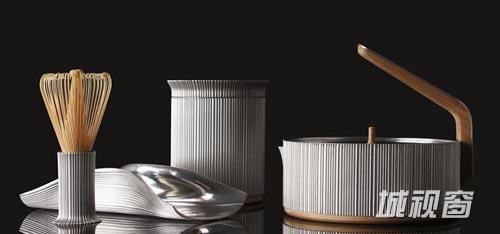 茶筅的把手部分采用锡镴制成,表面竹纤维的肌理与上方的竹丝相呼应,形成了一种强烈的材质对比,下端外扩的造型使茶筅稳定的站立于桌面,保持了茶筅的卫生,也便于用后晾干。同时也包含了竹节的设计语义。