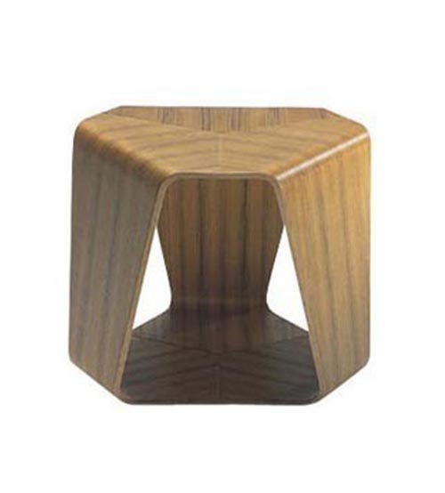 日本女设计师田边丽子的《Murai Stool》(Murai 为丽子原姓),将柚木以模压胶合板技术,不费钉子而采嵌入方式组装,其三块夹板的纹路连接更几近工整,使用上还能当做底柜收纳,完全展现日本工艺中的职人级水平。