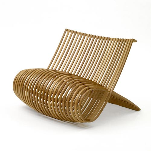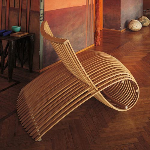 「为世界制造曲线」这对鬼才马克·纽森来说可谓当之无愧!尤以《Wooden Chair》而言,这看似脆弱的木网结构,其实蕴含马克·纽森细腻的弧线平衡设计,且任何角度都能呈现不一样的曲线美,更别说在工业设计发展上又是一项大胆的革新之作。