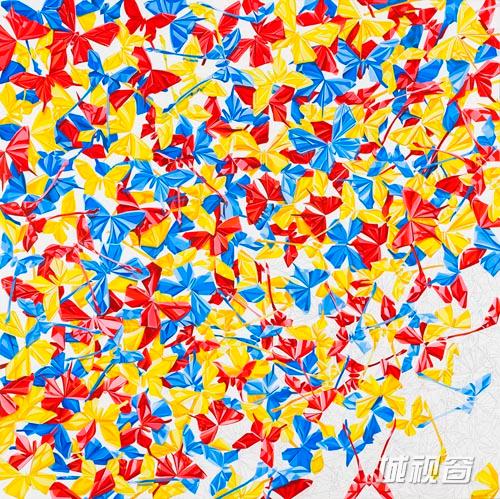 如果说绘画语言是艺术家认识世界,表达自我的方式,那么在郭剑这里,一张纸,反复折叠,揉搓,撕裂,粉碎,都是一次经历。“折纸”的呈现便是艺术家眼中的玲珑多面的人生,用折叠的表象客观的描绘一个看似安静的画面,他像是一个冷静的旁观者,既身处现场又置身事外,在幻想和现实之间寻求某种的平衡。郭剑的架上创作几乎都在尝试对折纸艺术中独有的多元化几何图形进行再创作,画面中纷繁交错的光影对艺术家色彩把握能力及直观想象力有着尤其高的要求。郭剑不仅成功展示出他的出色技艺,更向人们阐释了他对于画面中叙述元素存在与缺失的独特理解,郭剑力图在画面中汇聚过去、现在和未来,去制造出一个“仿真”的新世界,这一点与现象学中的“悬搁”手法不谋而合,即是挑选出一个物体,它所具备的概念及所处的环境和背景都无关紧要。郭剑就是在“悬搁”他的物体,是为了让大家对这个虚拟假象的呈现引起注意。