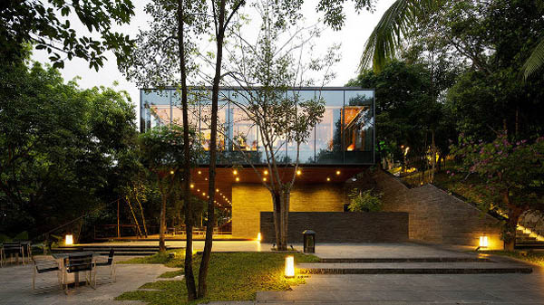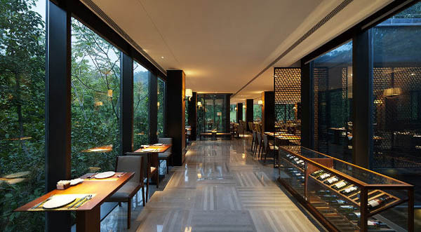设计中利用空间来定义自然与人的关系。换言之,由实体构件围合的空间形成了人类活动的场所,也使其与自然发生了各种互动的关系。这种对物体、空间的感知使身临其境的人产生了对自然的不同理解。最后,在建成的项目中,我们实现了两种不同的对于自然的感知: 1. 三维自然环境体系: 飘浮的玻璃箱体—餐厅 环绕感—“在丛林中用餐” 2. 二维自然环境体系: 观景窗—墙上的二维画卷