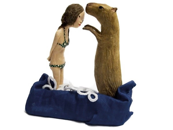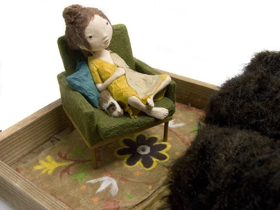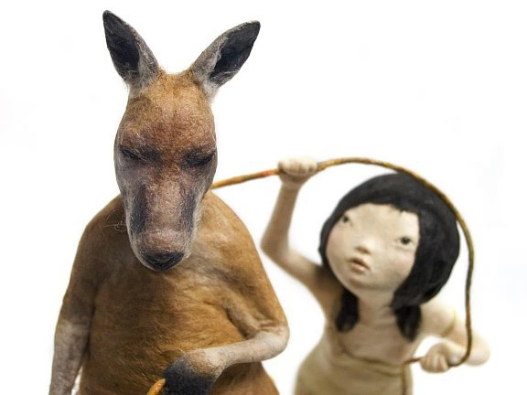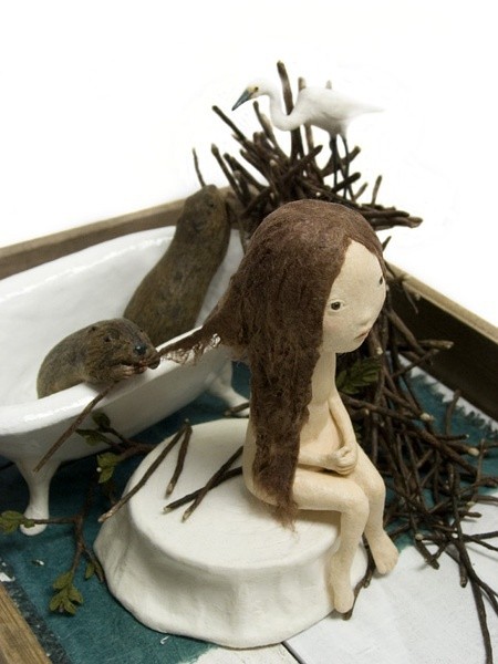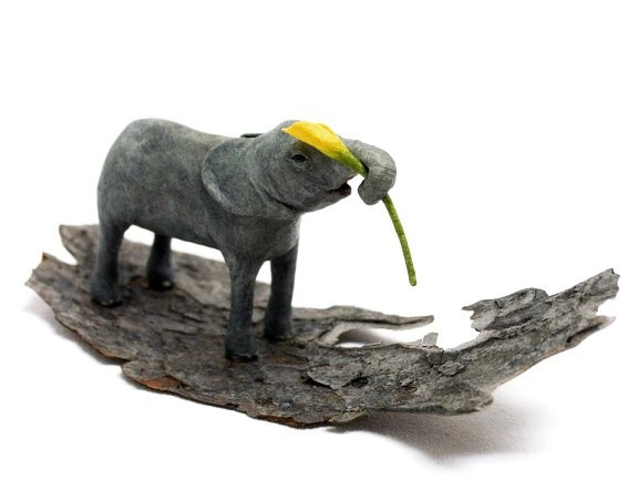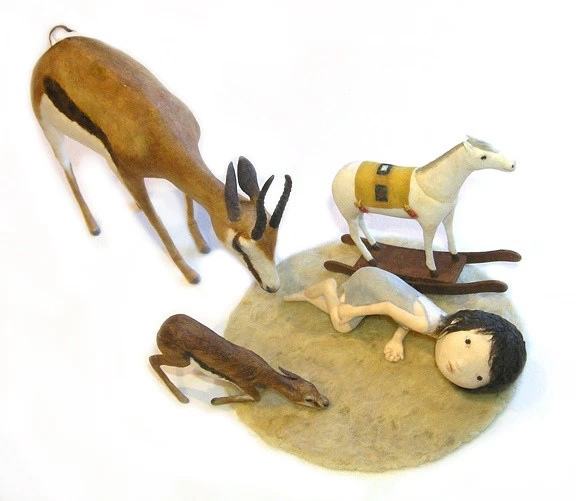 纸塑艺术家大久保恭子的这些纸塑作品,是不是主人公的形象很像宫崎骏笔下的千寻?其实这是Okubo的自作像,她用自己做毛豆,使用日本传统的和纸制作纸塑作品已经超过10年的时间了。当人物和动物同时出现的一幅作品时,总觉得正是作者自己眼中对自然和动物看法的纯真流露。