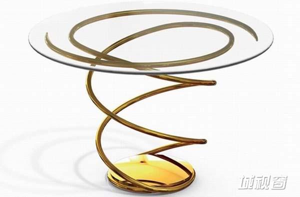 这一名为“Pitt- Pollaro”系列的家具现代感十足,,每一件家具都印有自己的编号和两位名人的亲笔签名。其中,布拉德·皮特设计的双人床颇为抢眼,该款大床仅有9张,分别由不同的珍贵木材打造,床头靠背微曲,由一块完整的木板制成,木板向床尾延伸呈拱形并形成一张长板凳。除此之外,参与展出的还有餐桌、吧台、床头柜、手扶椅和大 理石双人浴盆。不难看出,他的很多作品都围绕着一个重要元素——一条连续不断的几何线:X形餐桌底部长达5米的支撑架纵横交错,玻璃茶几底部蜿蜒曲折。当问及布拉德·皮特为何如此钟情这个元素时,他这样解释道:“人的一生,由出生到死亡,其实就是这样一条没有断点的线。”