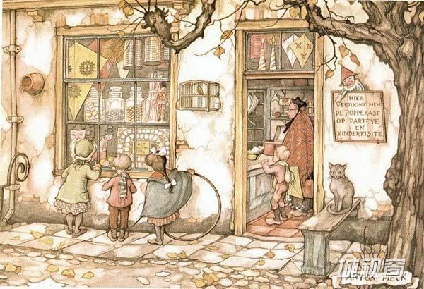 Anton Pieck的作品非常受欢迎,有趣的是,他的作品大部分作品已绝版,网络却把它们带了回来,如今依旧能在生日贺卡和日历上看到。