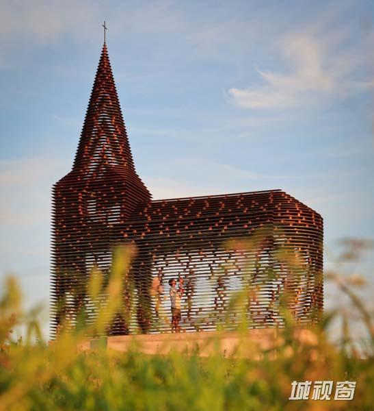 这样另类的教堂恐怕还没有见过吧?它是用100层风化钢板堆积建成的,四面通透,其象征性大过了实用性,由比利时建筑师Pieterjan Gijs和Arnout Van Vaerenbergh完成,高10公尺,位于比利时林堡(法语Limbourg,德语与荷语:Limburg,是位于比利时列日省部苇德尔河河谷的一座城市)。当有光线穿透时,其美妙的变幻似乎既预示着宗教上的启示,而且更是一件十足的装置艺术。 点击查看城视窗更多原创设计