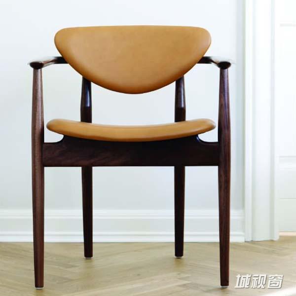 另外,芬·祖尔也设计了带点明朝椅风味的“109 号椅”(Model 109)。这张单椅采用胡桃木作为主要材质,搭配牛皮坐垫,而其美丽之处就在于它的刀刃扶手:侧看有如翅膀般展开飞翔,轻量感中又带点雅致,营造出柔美的视觉。