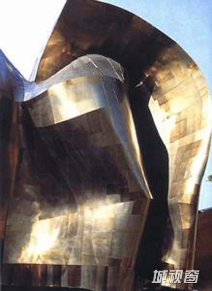 EMP的名字来源于著名摇滚乐手Jimi Hendrix,在这个表现音乐的建筑中,盖里把一组玻璃的雕塑设计成吉他头部的样子,而狂躁的颜色,金色、天蓝、紫色、红色和银色暗示着音乐的回响,正如Hendrix那首“紫雾”。
