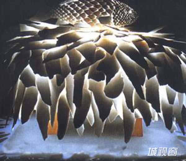 在巨大的望远镜后面,大厅的天花上,盘旋着蛇形的装置。