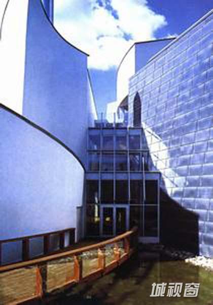 EMR通讯技术中心,延续了Vitra博物馆的美学。弯曲的墙面与曲线的木桥相得益彰。和最初的曲型结构相比,盖里近期的作品更加柔和和流畅了。同样的钛金属面材在他的手中变得服贴,像丝绸一样泛着精致柔和的光芒。技术性越发退后了,仿佛是天外的来客,带着梦幻的色彩,艳丽不可方物。