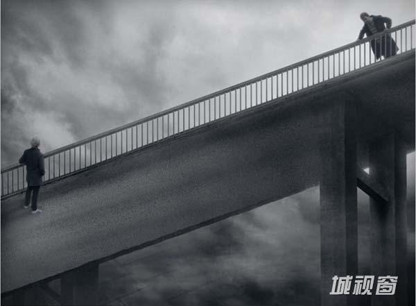 这张图片名为上行下行,其是 Johansson先生于2009年创作的,其展现了两个人不可能站在同一座桥的两侧。