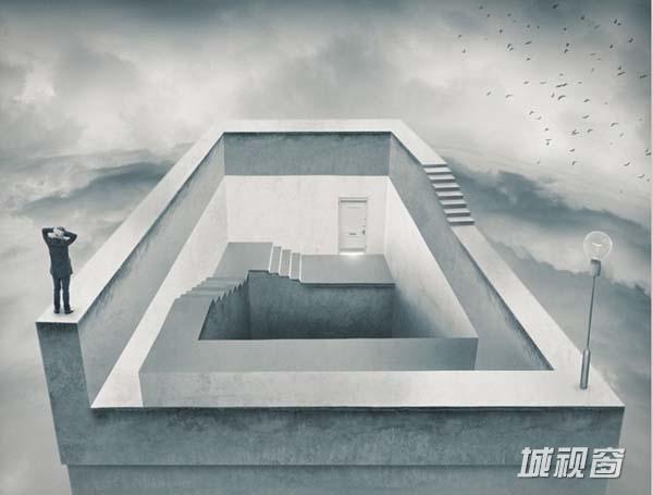 这是另一幅光学错觉图,其显示了一个男人正在为如何进入楼梯间而困惑,不过这幅图并没有什么实际意义。