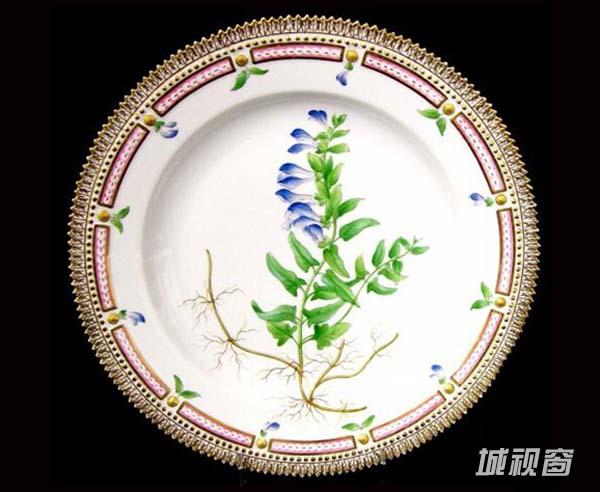 下面是经典丹麦之花(Flora Danica)系列。色彩雅致、笔触细腻的“丹麦之花”系列是最能表现皇室尊荣的瓷器珍品。丹麦之花系列是丹麦国王克里斯汀七世为俄国女皇凯瑟琳二世定制的礼物,1802年由当时最具天分的艺术家Johann Christoph Bayer负责。Johann Christoph Bayer和他的工艺师们仿照植物图案手工刻画,并采24K金镶饰盘边,经过12年的制作,终于在1802年完成全部1802件作品。200多年后的今天,丹麦之花系列仍被仿制,精细复杂的釉下彩装饰图案包含有700多种野生植物,这些“丹麦之花”图案都是从百科全书精选出来的。