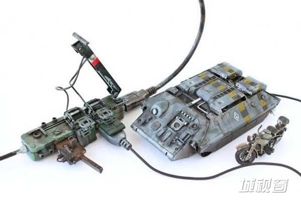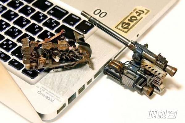 需要指出的是,池内启人所设计这一电脑MOD每一个部件的具体功能都等待用户自己去发掘。比如,图中这个炮筒造型的玩意儿实际上是一个外置U盘,而另一个坦克模样的东西则是鼠标。