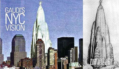 有趣的事实:高迪设计的纽约饭店的草图,曾经确实被推荐作为曼哈顿归零地项目(即纽约世界贸易中心,911摧毁地)主要部分的重建。