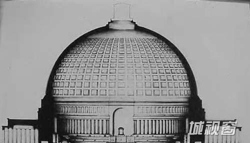 人民大厅由阿道夫·希特勒计划建造,由阿尔伯特·施佩尔设计,是一个巨大的纪念碑建筑。它差点成为柏林的核心建筑物,就它的尺寸和形象而言,也会是柏林最重要且最令人印象深刻的建筑物。幸好由于战争的爆发而阻碍了大圆顶的建造。