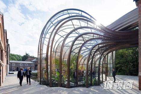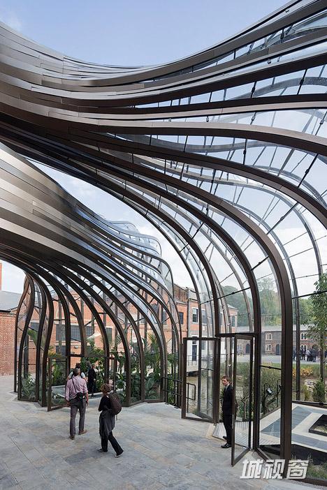 英国设计师托马斯•赫斯维克完成了孟买蓝宝石金酒公司的综合体改造工作,项目地点位于英国汉普郡,除了改造原有的红砖建筑群,还增加了两座雕塑般的玻璃温室,而温室的热源来自于蒸馏过程中产生的热气。