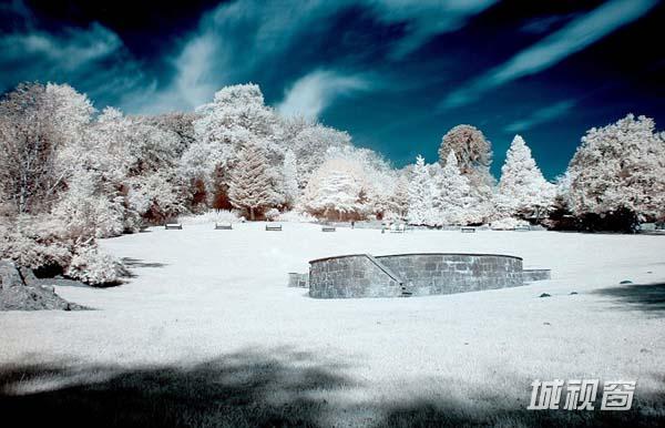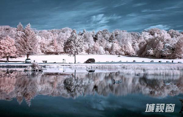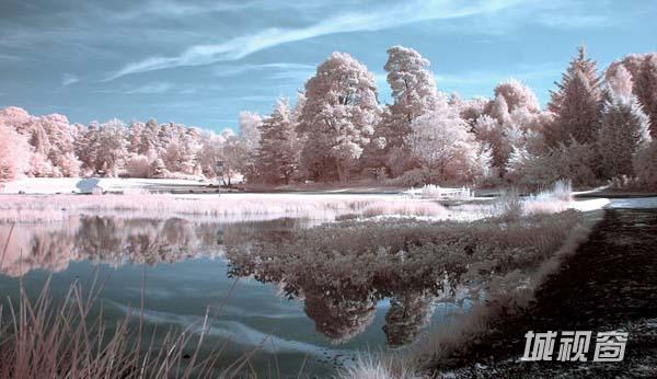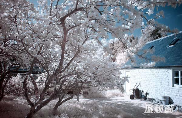 彭宁顿将相机设置为720红外变焦,这可以让相机捕捉到不同波长物体发出的热辐射。然后在10到15秒快门速度下拍照,经过矫正后,令人震惊的照片就诞生了。根据被聚焦物体散发的热辐射,照片中可展示出截然不同的深蓝色、淡白色以及亮白色。比如,树木会因为散发的热量不同而出现不同的颜色。
