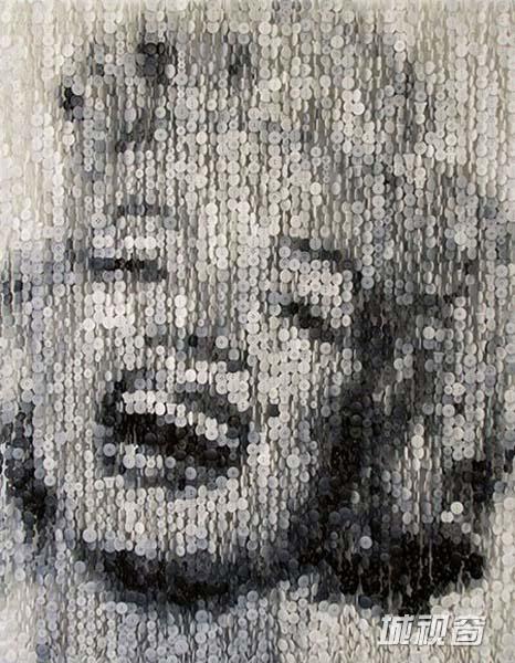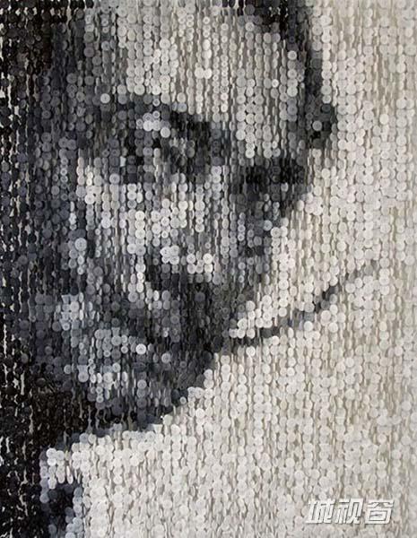美国艺术家用数千纽扣拼出名人肖像