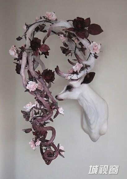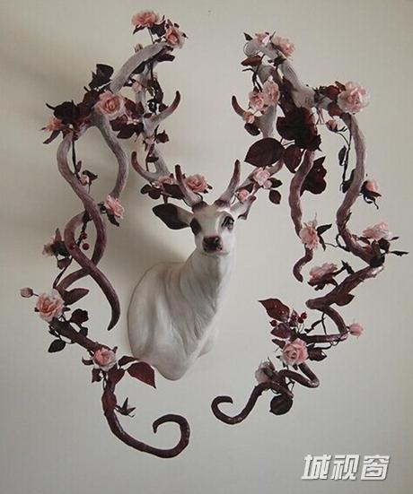 狐狸、鹿以及兔等形态,交织着植物与花圈,形成一组令人心动的艺术作品。