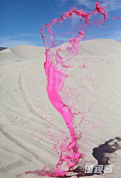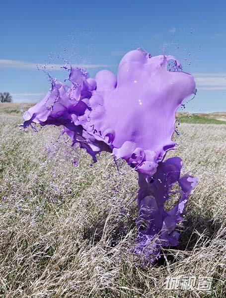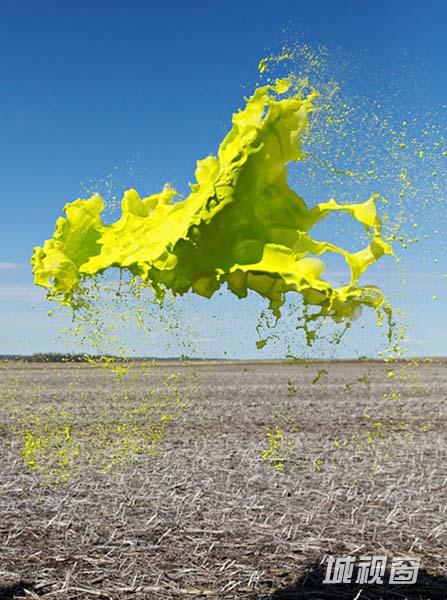 为了达到这种效果,两位摄影师Cassandra Warner 和Jeremy Floto把彩色颜料抛洒到半空中,并通过高速照相机捕捉下这些瞬间。他们不断重复这样的动作,直到扑捉到最美的刹那。这组作品有趣之处在于他们没有选择影棚拍摄。用实景作为照片的背景使得作品更加具有真实混乱感,观众仿佛置身于一个异星球的环境。