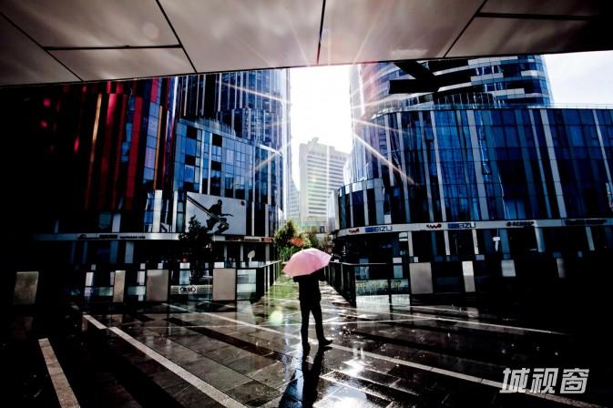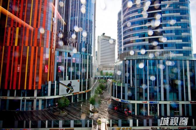 三里屯SOHO由5个购物中心和5幢30层高的办公和公寓楼组成,在雨天进行拍摄时,这些闪烁着奇怪反光的庞然大物能给我带来更多新鲜的拍摄角度。