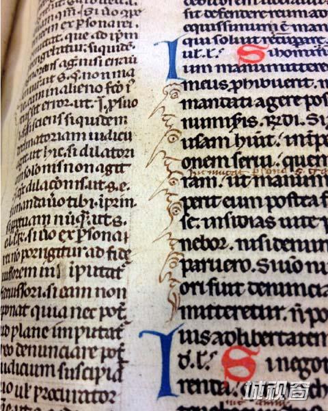 换种方式来讲,这些涂鸦就像是他们的印记与签名,一点点关于那些默默无闻、无法在他们的工作中留下痕迹的抄写员的线索。因为在当时,任何夹带私货的素描与抄写员的姓氏首字母都不允许出现在手抄本中。图为中世纪一位上课无聊的男生画的涂鸦。在15世纪的课本涂鸦内容中,总是有尤维纳利斯(古罗马讽刺作家)讽刺作品的影子,此内容经常出现在年轻人的课本中。