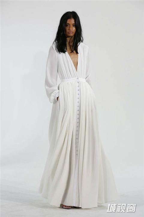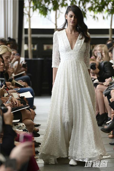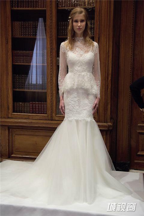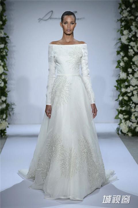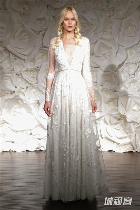 秋冬季节里举行婚礼,赤膊上阵未必太过受罪,千篇一律的披肩也早就令人生厌。不如换上剪裁合体的中长袖款式婚纱,美观又御寒。
