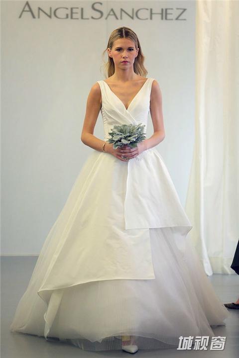 如蛋糕般层层叠叠的白纱是婚纱中永不出错的选择,一款这样蓬松的婚纱也能满足不少女孩子的公主梦。