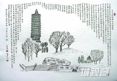此外,这座塔闻名遐迩还有一个重要原因,就是各种文艺作品、特别是民间曲艺作品的传播。“玲珑塔,塔玲珑,玲珑宝塔十三层……”脍炙人口的“绕口令”,经久不衰,几乎成了学习民间曲艺的必修课。人们喜爱“玲珑塔”,还采用多种民间喜闻乐见的曲艺形式,演唱传咏。表演《玲珑塔》曲目的,有绕口令、数来宝、快板书、西河大鼓、京韵大鼓、二人转、歌曲、说唱,甚至还有当下流行的喊麦……风格各异。很多著名曲艺演员都表演过《玲珑塔》。1935年上海百代唱片公司就灌制了西河大鼓《玲珑塔绕口令》唱片,1954年“中国唱片出版社”再次灌制了西河大鼓《玲珑塔绕口令》。然而,这首家喻户晓的曲目,最早到底是何人所做,现在仍然不得而知。《北京传统曲艺总录》上只说:玲珑塔一本、作者无考,实乃一件憾事。