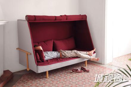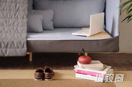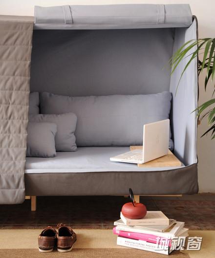 这是一款在日推非常火的四不像创意家具「Orwell」,结合了小屋,沙发,床,橱柜功能。厚重的被褥窗帘让你远离噪声,又提供了一定的私密性。打造你的专属地带,实在是太赞!