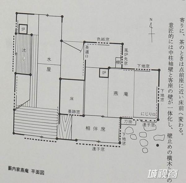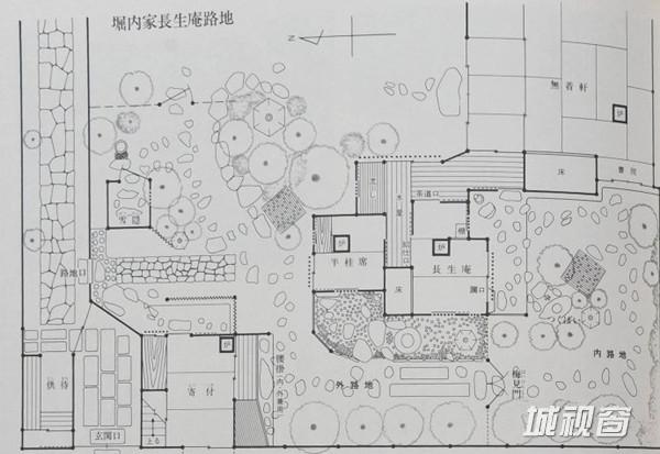 值得注意的是这里采用的石头要求用自然石,不加切磨。 茶室建筑本身毕竟只是浊世中的一方净土,但这方净土怎能立于浊世之中又超然其外呢。这里不能不提到茶室外的露地和中门。