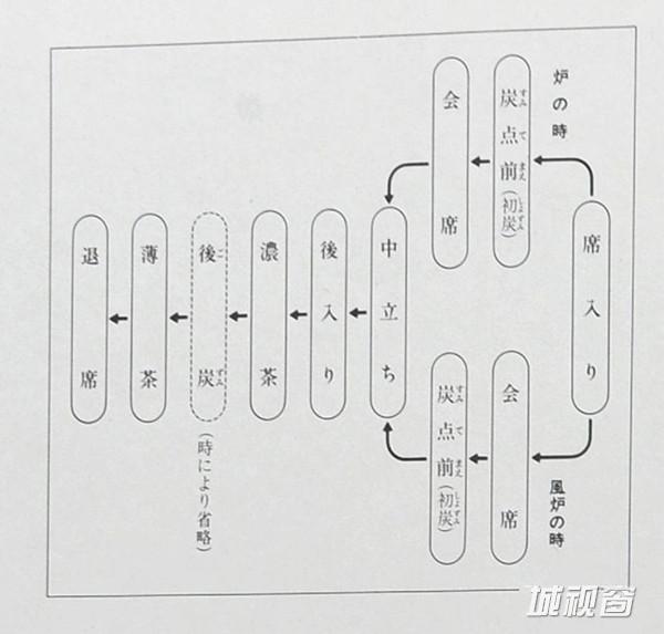 此外,茶室的组成部分也深受禅宗影响。从外界到茶庭(茶室前的小院子,又称露底)意味着从喧闹的尘世到安静的禅境;从门廊通往茶室的甬道意味着冥想的第一阶段,即自我启示阶段;在茶室里的禅思则是自我升华。