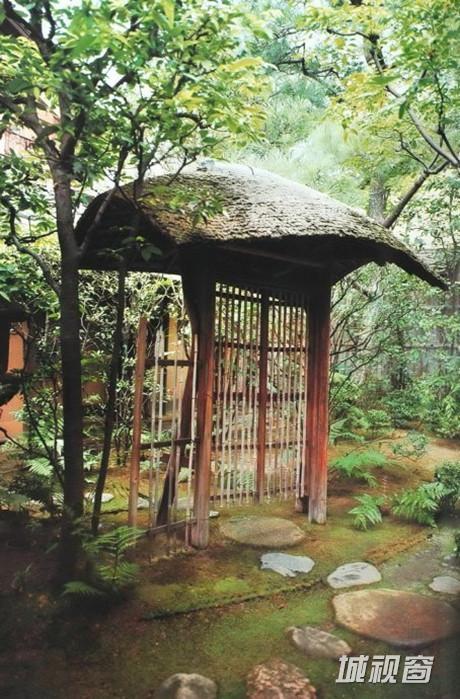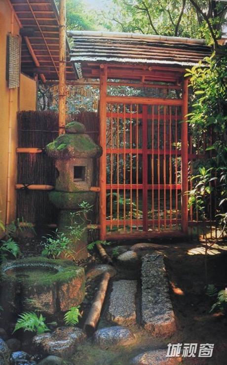 走出露地来到中门时,眼前的中门既不牢固又不奢侈。怎样解释这道门呢?假如门是保护自我世界之物的话,那么,门外皆属敌人,然而,露地的门只是小巧的栅栏。说它是门,也只能是个形式,作为露地的门打破了门需隔绝内外的观念。栅栏门既简单地打开,又可从容地窥见里面的动静,因此,栅栏门只是为表现出门内外侧的不同层次,其外侧虽同时还处在同一露地的延长线上。