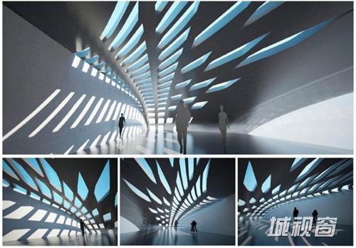高铁之间的天桥和“弄堂”通道,将整个空间立体地组合。