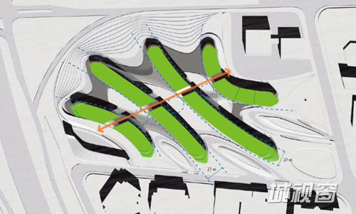 四列高铁中间的一条“弄堂”的设置,不仅在建筑立面上增加了变化,而且也让人感受到上海弄堂里面特有的走东逛西的空间体验。
