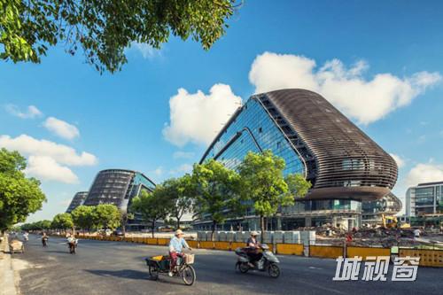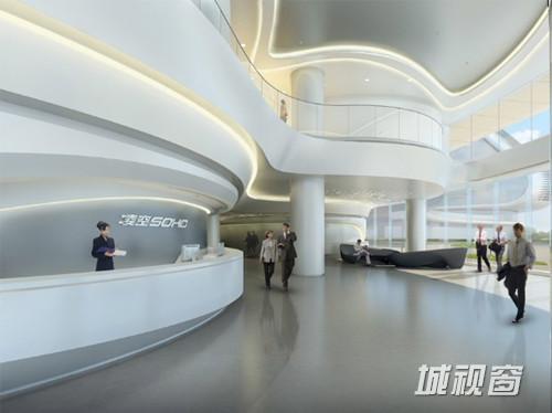 已经建成的凌空SOHO办公区,简洁明快。